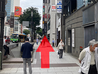 ③歌舞伎座出口から出ていただき、そのまま進んでください。