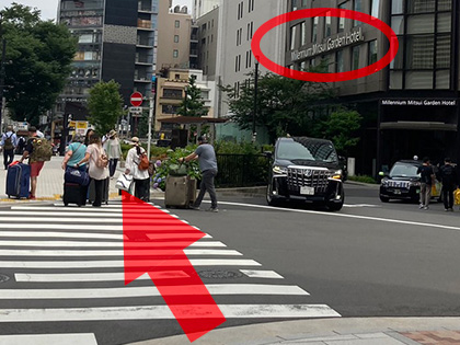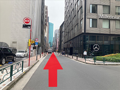 ③ミレニアム三井ガーデンホテルとタイムズの路地を直進してください。