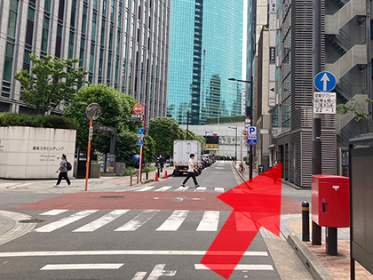 ②正面に日本旅行、右手にセブンイレブンがあるのでセブンイレブンを左折してください。