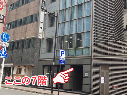 ⑥ 通りの右側にビルの入り口が見えてきます。エレベーターまたは階段で3階にお上がりください。