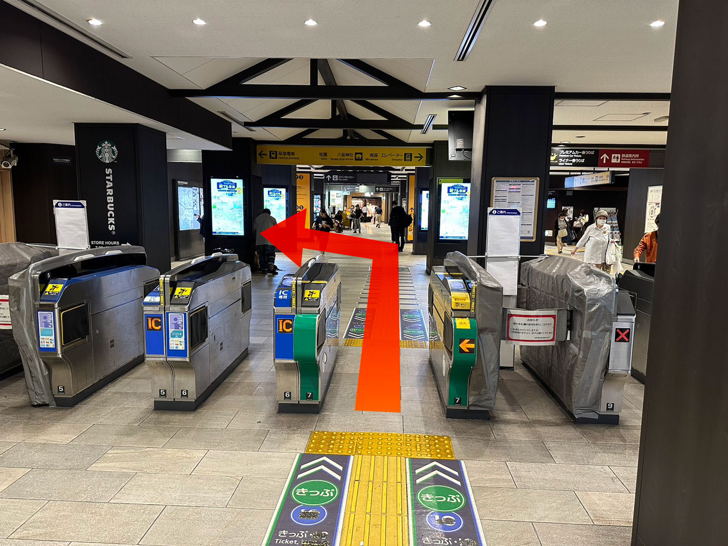 ①改札を出て阪急電車方面へ左方向へ進みます。