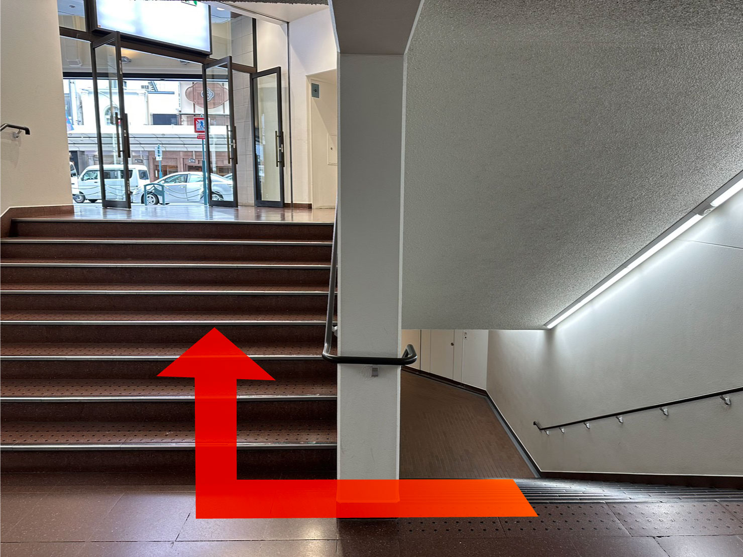 ②クリスタ長堀を「滝の広場」「北8出口の看板」まで直進して下さい。