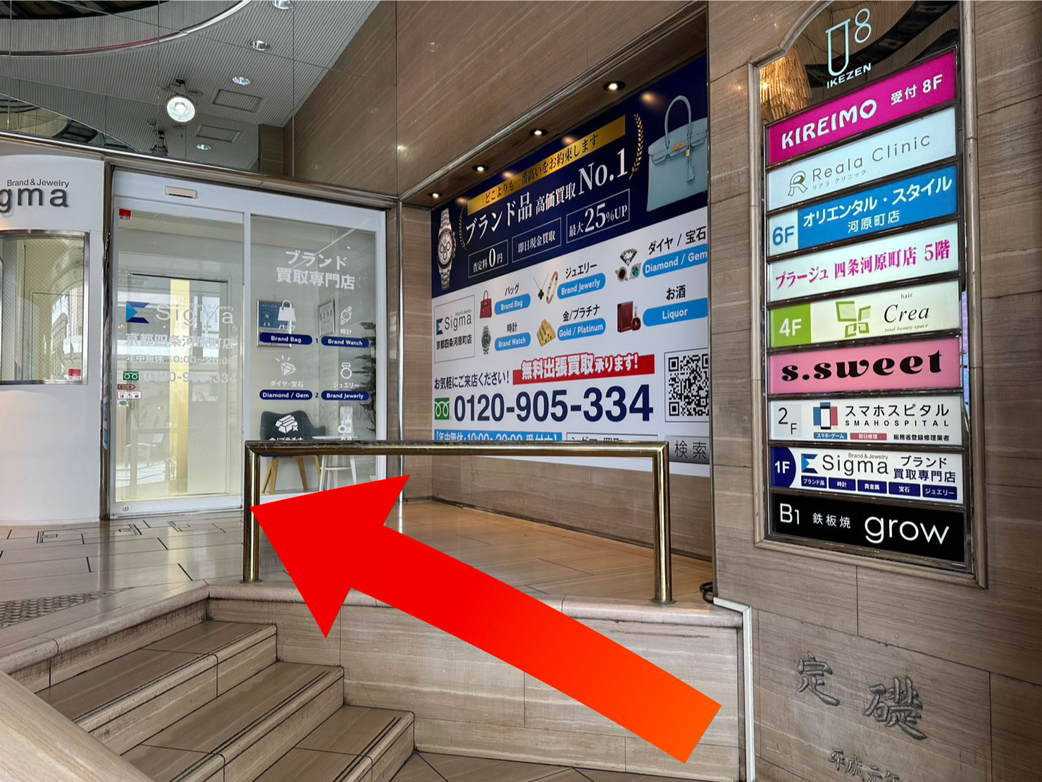 ⑦1階の右側「Sigma 京都四条河原町店」がございます。